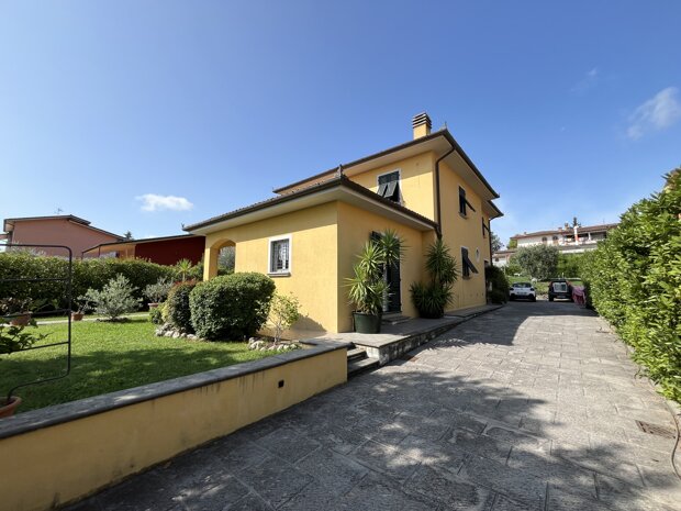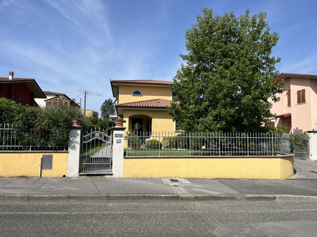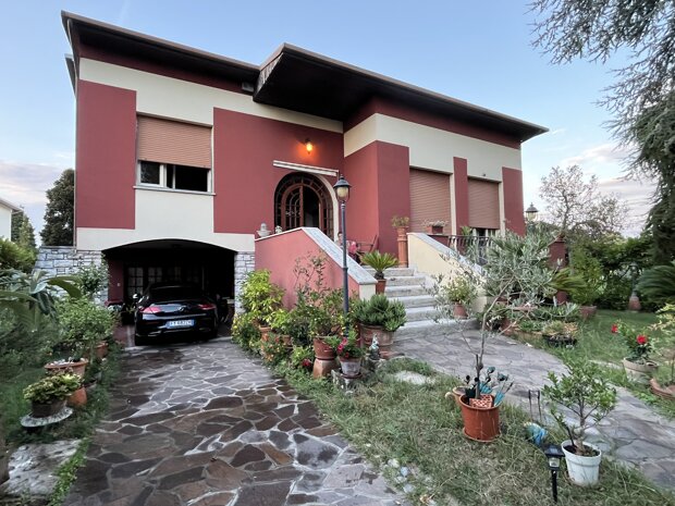 Bella villa singola a Lucca Ovest a 2 Km dalle Mura Urbane. Si accede mediante ampie scale esterne in un salotto, con vista sull'ingresso, ed in um ampio soggiorno contornato da grandi arcate che introducono alla zona giorno costituita da cucina abitabile, sala da pranzo e wc. Nella zona notte abbiamo tre camere e bagno. Al piano terreno abbiamo anche locali per cantina cui si acceda anche da grande accesso dal giardino.