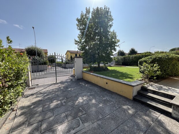 Corredata da ampio giardino molto ben tenuto e da poco terreno sul retro con un secondo accesso da una strada privata.