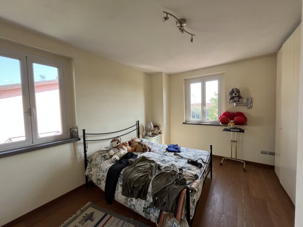 E' elevata su due piani con, al piano terreno, ampio ingresso-soggiorno, grande cucina abitabile, bagno e locale termico, grande portico ed ampio garage; al piano primo tre camere matrimoniali e grande bagno oltre ad una cameretta adibita a studio, terrazzo a servizio della camera esposta a sud.