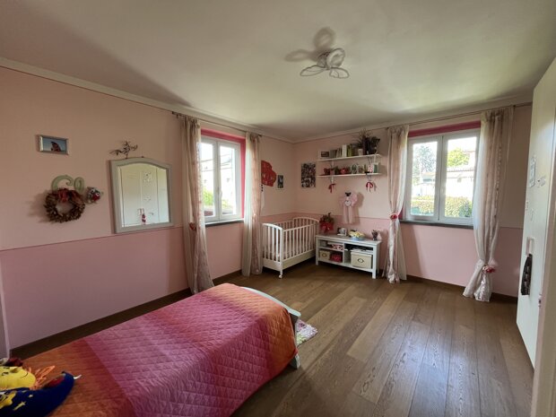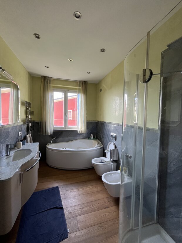 Il tutto versa in ottime condizioni, con impianti tecnologici avanzata (pannelli solari, riscaldamento a pavimento, serramenti ultima generazione con persiane, aspirazione centralizzata) e rifiniture di grande pregio.